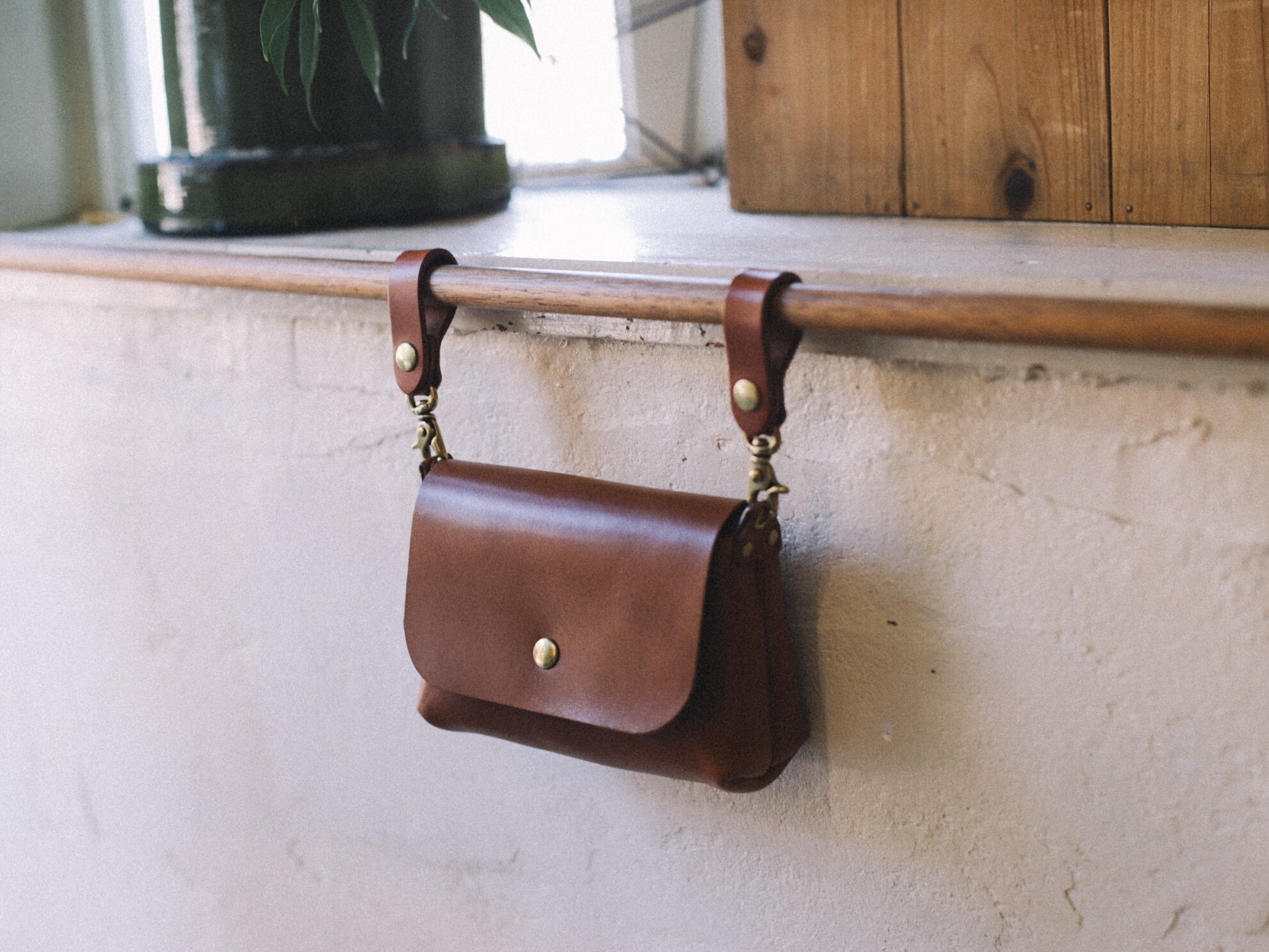 真鍮のフックが印象的な革のキーケース